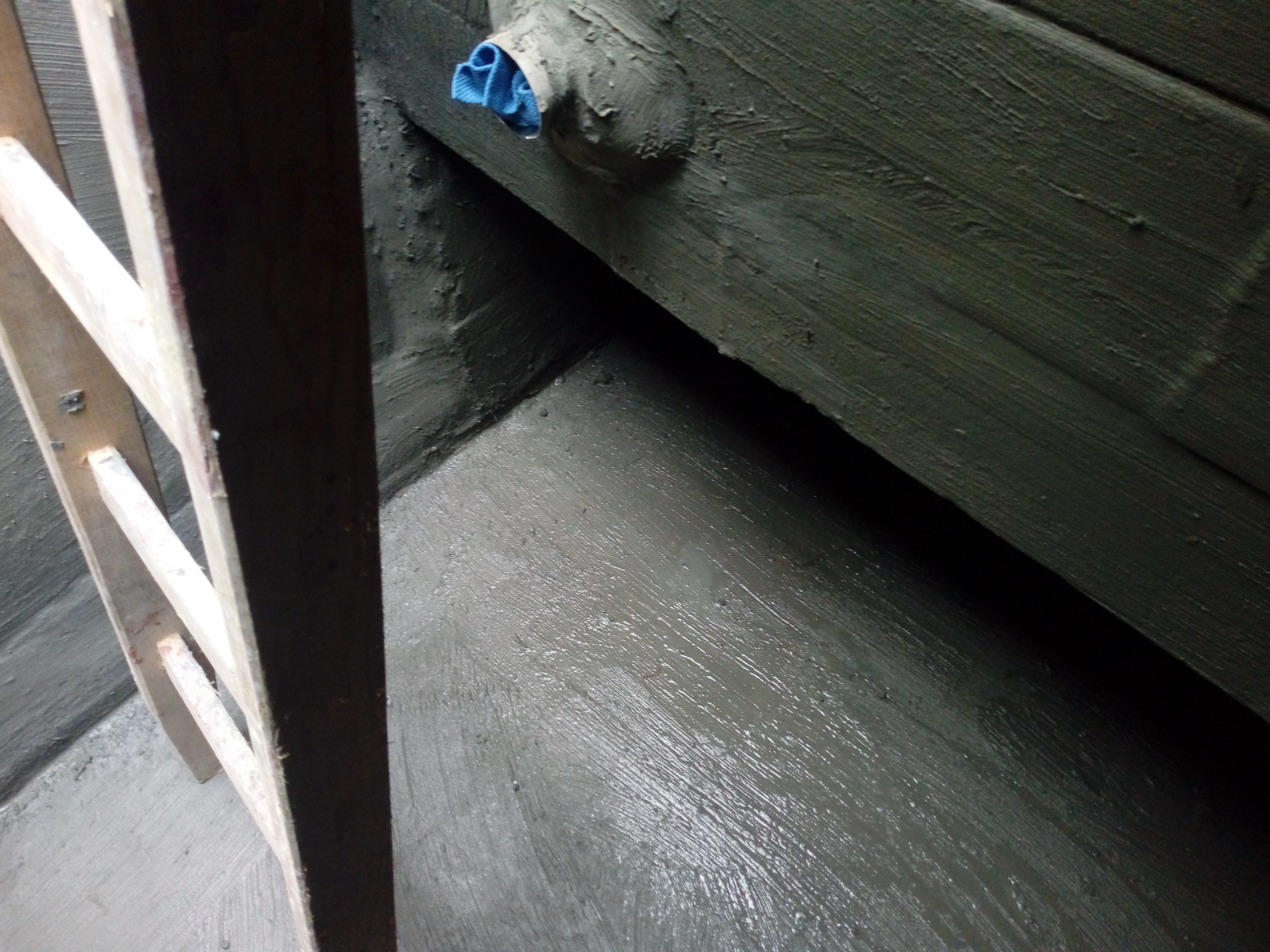 Tlakovou vodou byla omyta „kyselá jímka“, do které přitékají vody z galvanovny. Následně byly prořezány spáry a odstraněny špatně držící obklady. Potom byla celá plocha opatřena penetračním cementovým nátěrem Gemite - Adi-Con BAAC Super. Následovalo nalepení obkladů na původní místo a reprofilace povrchu materiálem Gemite - Spray-Con WS ST. Prostupy, ústící do jímky, byly opatřeny nátěrem Gemite - Fibre-Prime pro vytvoření adhezního můstku „kov-beton“, s následným utěsněním prostupu materiálem Gemite - Cem Kote CW Plus. Po technologické přestávce byl celý povrch penetrován materiálem Resimac - Resichem 505 Damp Seal a opatřen protichemickým nátěrem Resimac - Resichem 511 UCEN ve dvou vrstvách.